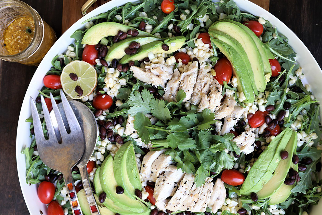 Авокадо — достатньо універсальний продукт, який часто використовують в різноманітних салатах. Крім того, він містить багато корисних речовин, необхідних для нормальної роботи організму людини. Авокадо чудово смакує з обсмаженою у паприці індичкою, а кисло-солодка заправка з медом і лаймовим соком вдало доповнює це поєднання. Кунжут створює ніжні горіхові нотки, а зелене листя айсберга та маленькі помідори додають страві свіжості. Такий салат можна подати в якості холодної закуски, або ж використати його як доповнення до гарніру — відвареного риса чи картоплі.