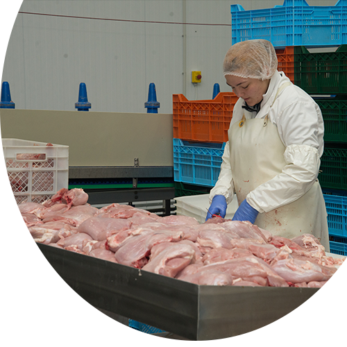 Задля збільшення товарного асортименту, ми також проводимо розбирання індички на окремі частини. На конвеєрі відділяється філе, грудка, крильця, стегна, гомілки, субпродукти та половинки тушок, які, в свою чергу, розподіляються по декількох напрямках: