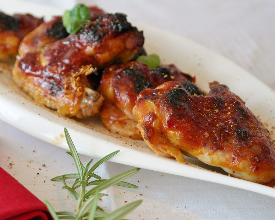 Смажене чи запечене м'ясо часто використовують як закуску до різних видів алкогольних напоїв. Одним з найкорисніших та найсмачніших варіантів для подачі з холодним пивом або вином є індичка, адже вона відрізняється невеликим вмістом жиру. Обираючи птицю для приготування майбутньої закуски, варто звернути увагу на плечову частину крила індика. Відносно невеликі шматочки дуже зручно тримати та занурювати в соус, вони не потребують нарізки — тому страва вийде не тільки гарною, але й практичною.